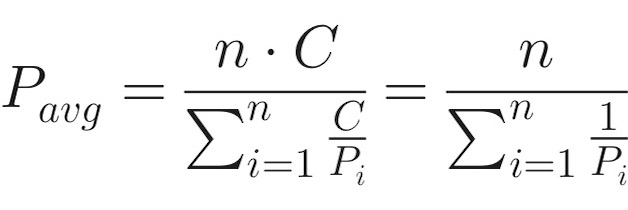 用数学公式表达,定投的平均成本 P_avg 为: