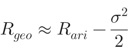 大盘真实收益:10% - (15%^2)/2 = 8.87%
